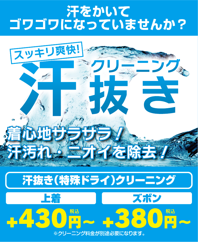 スッキリ爽快!汗抜きクリーニングがおすすめ💧